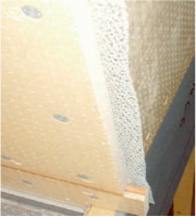 新素材の断熱材は、木造在来工法、枠組工法、RC工法で38〜70㎜の外断熱工法が可能です。炎に触れても燃えにくく、形状が崩れにくいのも特長です。