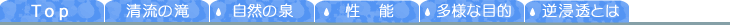 半透膜は、私たち人間をはじめ生物が本来持っている生体膜ですが、それをハイテク技術で人工的にっ作り出し、浄水器に応用したのが「清流の滝」「自然の泉」の逆浸透です。 |