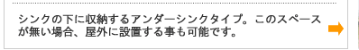 清流の滝は屋外にも設置可能です。通常シンク下に設置して使用するのが一般的ですが、その分わずかにスペースを利用します。屋外に設置する方法をとれば、現状を変える事無く美味しい健康な水を導入出来ます。