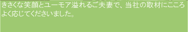 色々な相談にも随時応対していただけるとの事でしたので、安心して選びました。